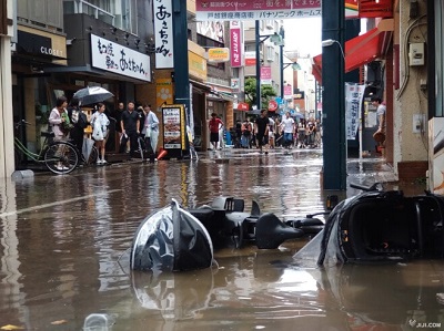 きのうの大雨の続編です。立会川では【欄干】から水があふれ出ました!そして戸越銀座商店街では地下の施設に大量の雨水が流れ込み大規模な冠水が発生しました。また大井町付近では「マンホール」から水が噴き出たとのことです。品川区では、残念ながら被害にあわれた方に対する支援「見舞金・災害ごみ・消毒など」を早速開始しました。詳しくはこちらから(画像クリック・タップ)