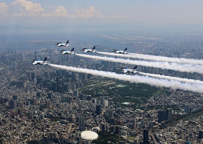 今日13日「世界陸上開幕」に合わせて、航空自衛隊のアクロバット飛行チーム【ブルーインパルス】が都内を飛行します。大崎周辺でのベストポジションは【TOC屋上❣】飛行時間や飛行ルートはこちらからです